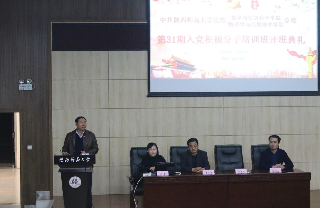 我院于2017年11月27日晚七点在文澜楼B段一楼会议厅召开了中共陕西师范大学bet36365体育备用网址分党校第31期入党积极分子培训班开班典礼。参会人员有物理学与信息技术学院党委书记曹沛涛,bet36365体育备用网址党委书记田安政,党委副书记邹尚田,团委书记王鑫以及第31期175名入党积极分子。本次会议由王鑫主持。