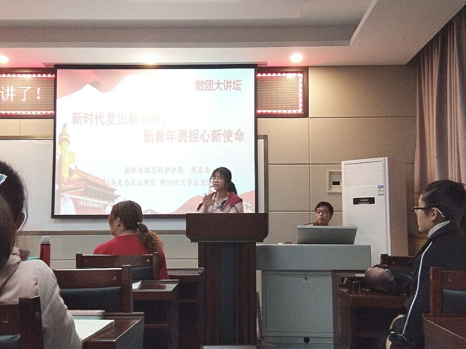 2017年11月28日晚七点,由bet36365体育备用网址院团委承办的"新时代发出新召唤,新青年勇担新使命"宣讲会在文津楼三段二层学术报告厅3225举办,参加此次宣讲会的成员有数科院2015、2016级部分同学,此次宣讲会由16级刘语秋同学主持。