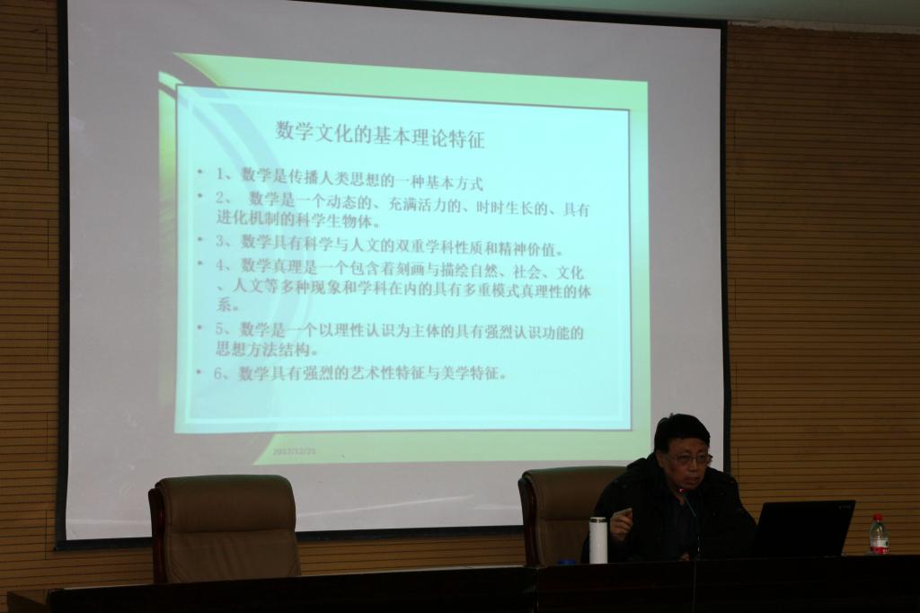 12月21日晚,在雁塔校区崇鋈楼一层学思堂,黄秦安教授为我院2017级学生开展了以“漫谈数学文化”为题的专业导引讲座。